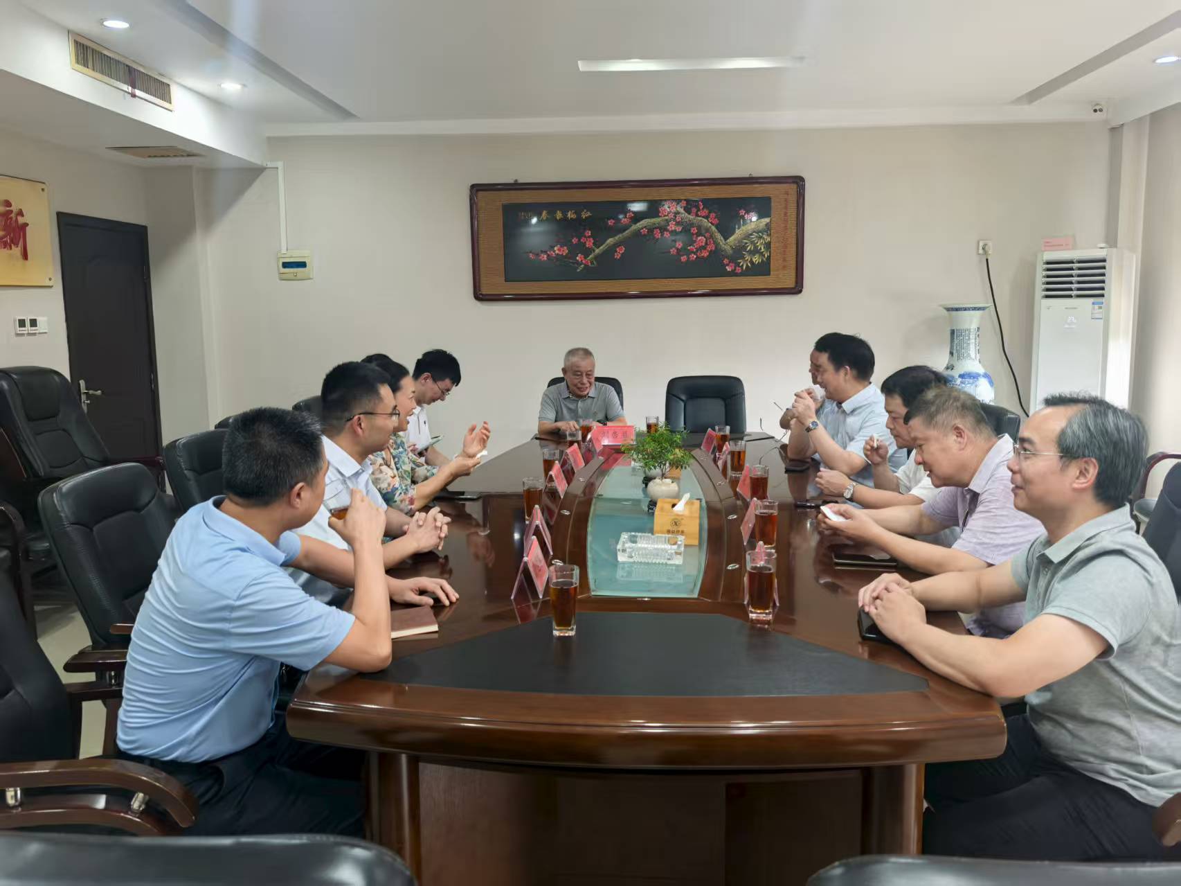 8月4日,由中茶院原院長(zhǎng)、浙江茶業(yè)學(xué)院執(zhí)行院長(zhǎng)張士康、南京大學(xué)寧孜勤教授、智碳云科技吳濤董事長(zhǎng)等權(quán)威專家組成的《茶產(chǎn)業(yè)生態(tài)價(jià)值研究開(kāi)發(fā)項(xiàng)目》國(guó)家級(jí)調(diào)研組蒞臨益陽(yáng)茶廠有限公司,在益陽(yáng)市科技局局長(zhǎng)楊茜、市農(nóng)業(yè)農(nóng)村局副局長(zhǎng)曹勝平等領(lǐng)導(dǎo)的陪同下展開(kāi)深度調(diào)研。本次調(diào)研聚焦茶產(chǎn)業(yè)生態(tài)價(jià)值挖掘與實(shí)施路徑,通過(guò)深入交流,為產(chǎn)業(yè)高質(zhì)量發(fā)展提供智力支持。