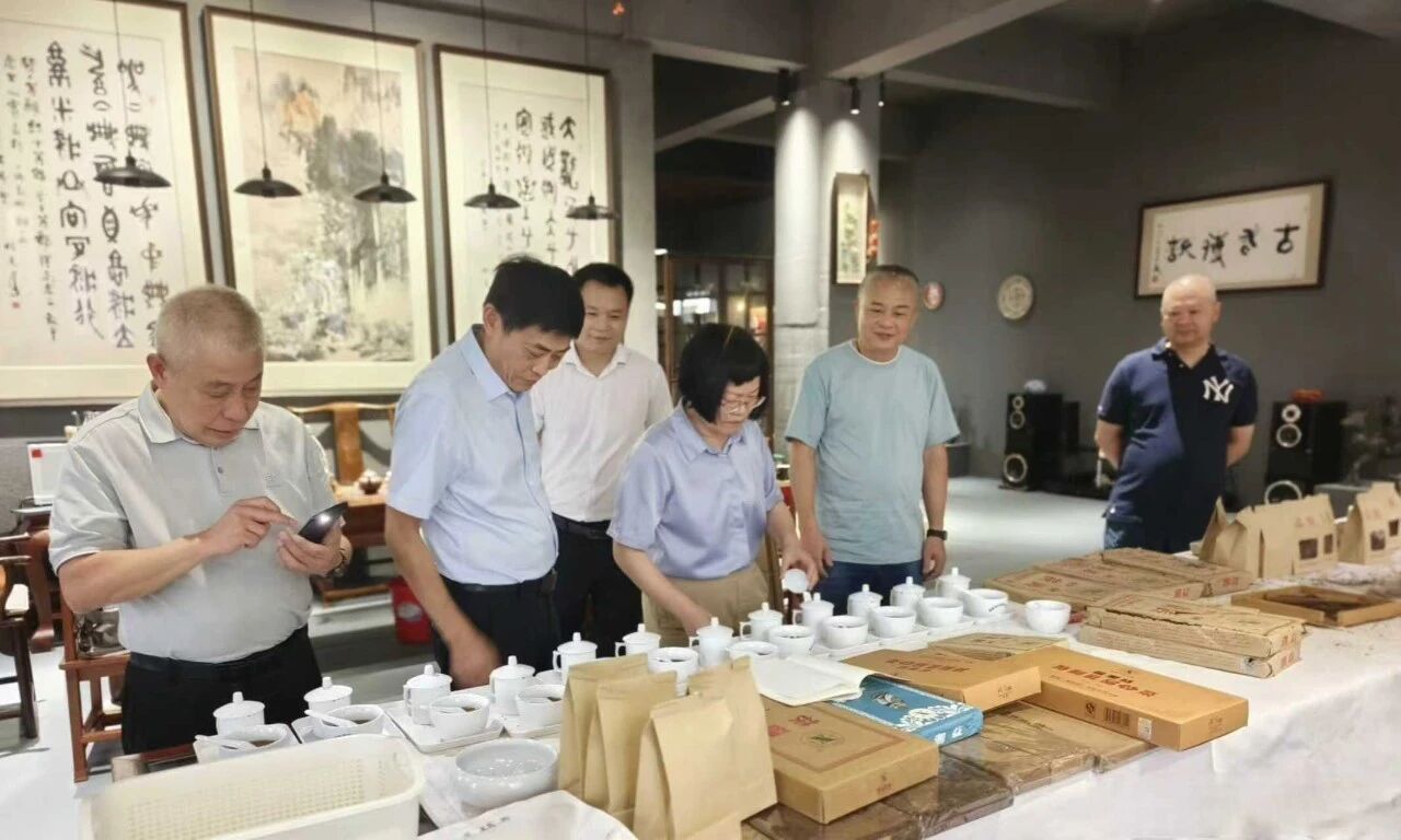 2025年8月23日至27日,由湖南農(nóng)業(yè)大學黃建安教授領(lǐng)銜,益陽茶廠有限公司董事長彭雄根、首席專家劉杏益帶領(lǐng)團隊,深入廣東主要茶葉市場與倉儲基地,開展以“湘益”茯茶廣東倉陳茶樣本為對象的專業(yè)審評與實地調(diào)研工作。
